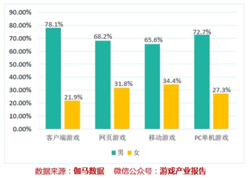 中國音數(shù)協(xié)游戲工委、伽馬數(shù)據(jù)的《2016中國游戲產(chǎn)業(yè)報告》曾經(jīng)指出:在國內(nèi)的大部分游戲平臺上,女性玩家和男性玩家整體都呈現(xiàn)出近似于三七開的比例。