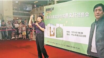 上周日,曾獲“國際安徒生獎”的兒童文學作家曹文軒攜新書《穿堂風》來到了中心書城,為孩子們分享閱讀的意義。原定于下午6點30分的演講,下午2點多,演講區(qū)就已座無虛席。據(jù)書城統(tǒng)計,光曹文軒這一場講座的到場人數(shù)近700人,《穿堂風》當天下午的銷售達到600多冊,現(xiàn)場曹文軒簽名的書籍有近1000冊。暑假閱讀市場如此火爆,難怪曹文軒將于7月底再推出新長篇《蝙蝠香》。