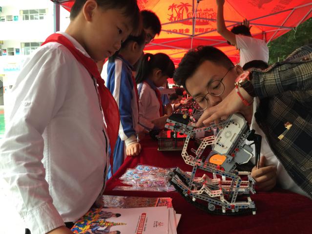 同期,愛匯百變教育科技有限公司也給同學(xué)帶來了炫酷多彩的編程大餐。通過對(duì)EV3編程機(jī)器人項(xiàng)目LEGO方針機(jī)械機(jī)構(gòu)以及LEGO圖形化編程展示,邀請(qǐng)現(xiàn)場(chǎng)同學(xué)進(jìn)行對(duì)套件進(jìn)行組裝、編程控制,普及編程和電磁感應(yīng)現(xiàn)象、電動(dòng)基本原理、電路等物理知識(shí),鍛煉學(xué)生科學(xué)創(chuàng)造思維,培養(yǎng)學(xué)科興趣。