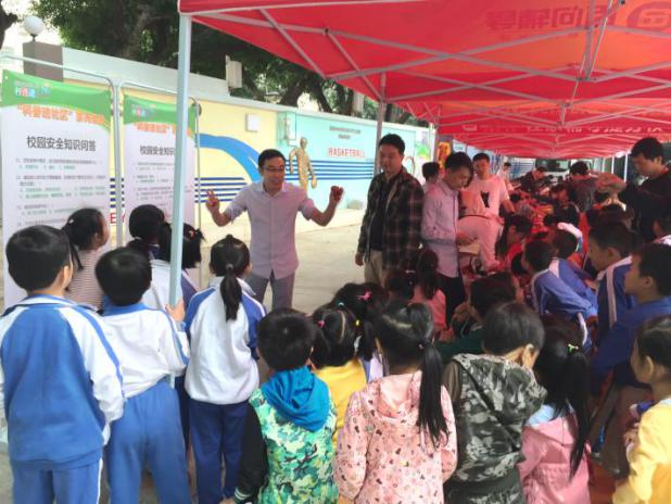 解說員正在向同學(xué)們科普校園安全知識(shí)