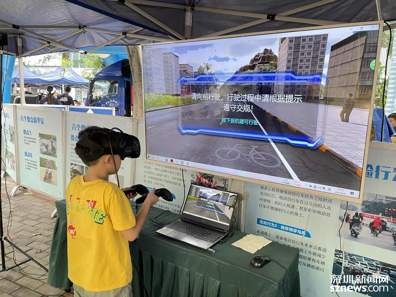 居民和小朋友們戴上VR眼鏡體驗電動車騎行時的風險