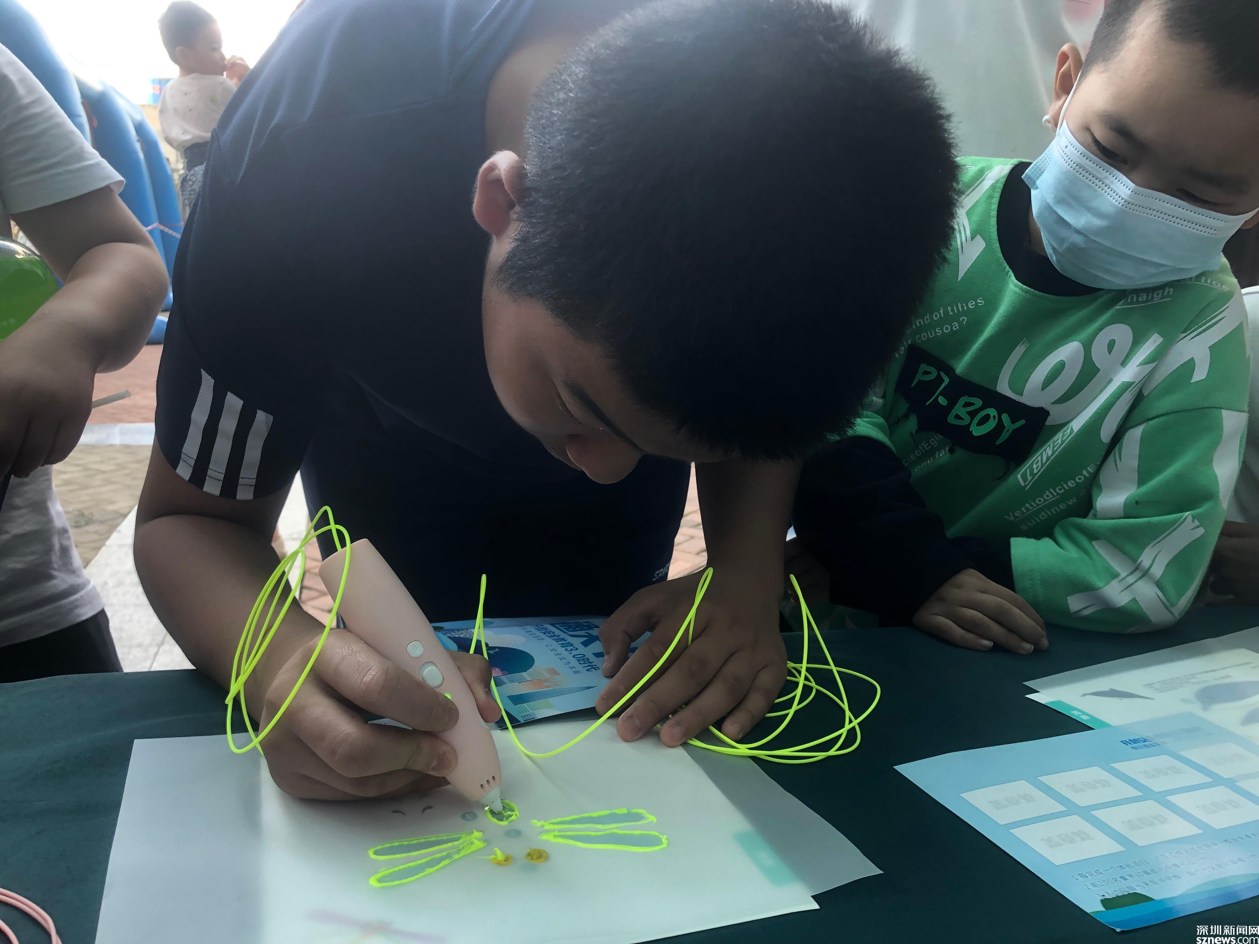 “哇!”參加活動小朋友們不斷地發(fā)出驚嘆聲,使用“3D打印技術(shù)”打印出了蝴蝶等物品;居民們佩戴上VR眼鏡現(xiàn)場就可以學習黨的歷史、新中國歷史,從黨的奮斗歷史中深切了解黨的初心和使命之可貴;居民和小朋友們紛紛拿起畫筆,以繪畫的方式表達了自己對在抗疫活動中辛苦付出的醫(yī)護人員等工作者的崇高敬意,以及對祖國的熱愛。