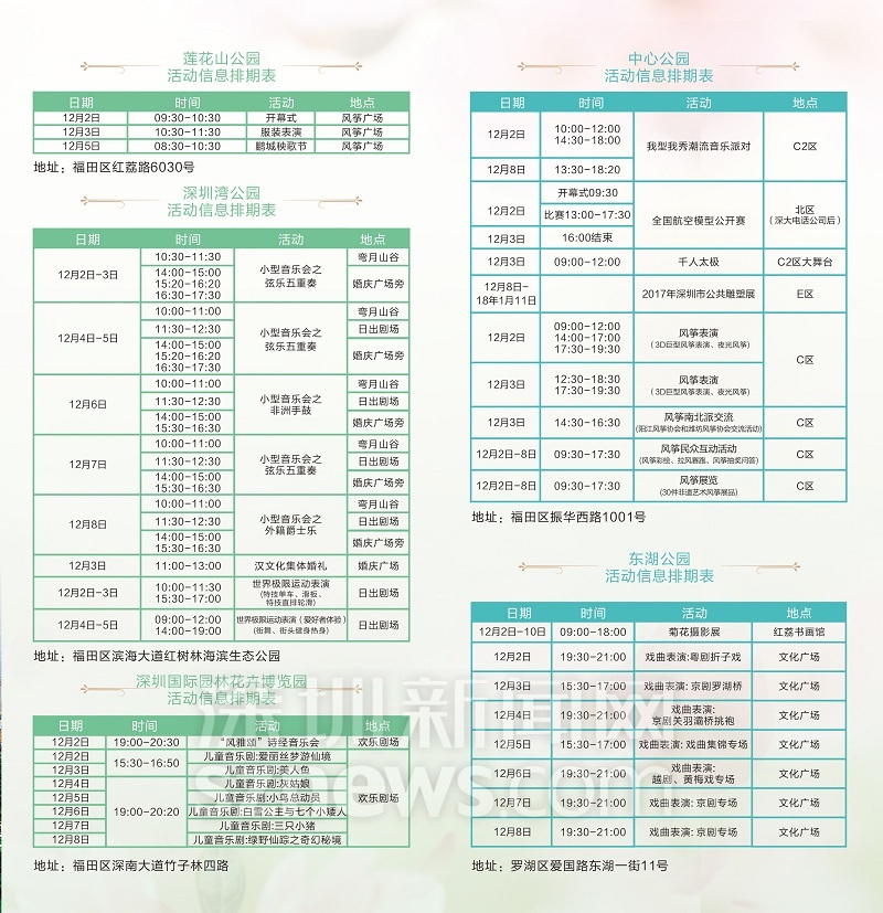 深圳新聞網(wǎng)12月1日訊(記者 鐘鴻冰 通訊員 崔嵩)一年一度的公園文化節(jié)即將到來,12月2日-12月8日,2017年第十二屆公園文化周將在全市27家公園舉行。本屆公園文化周緊密結(jié)合創(chuàng)建“國家森林城市”和打造“世界著名花城”重點工作,以“美麗深圳 多彩生活”為主題,充分展現(xiàn)美麗宜居的城市環(huán)境及豐富多彩的城市文化生活。