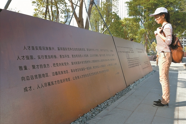 “創(chuàng)新驅(qū)動實質(zhì)上是人才驅(qū)動”——深圳人才公園的草坪上,鐫刻在一塊石碑上的話語在陽光下熠熠生輝。這,是習(xí)近平總書記就人才工作作出的重要論述。