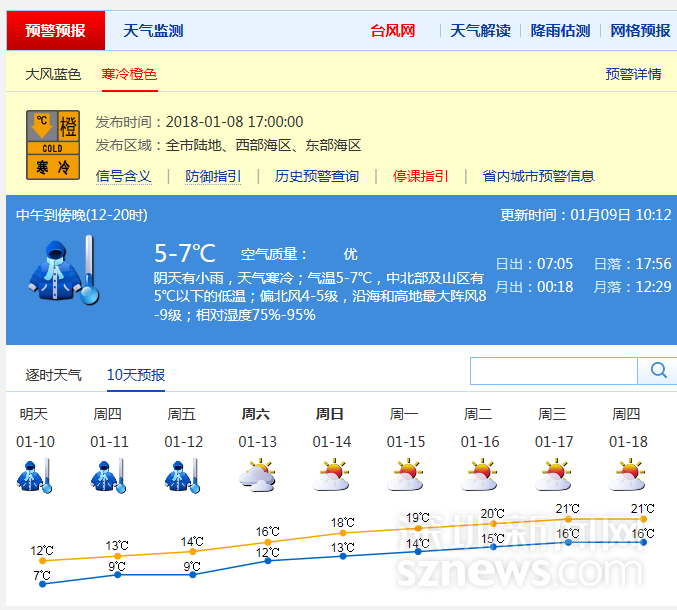 最低5℃ 深圳寒冷橙色預警生效 低溫持續(xù)5天