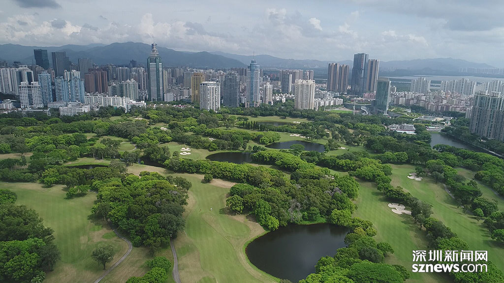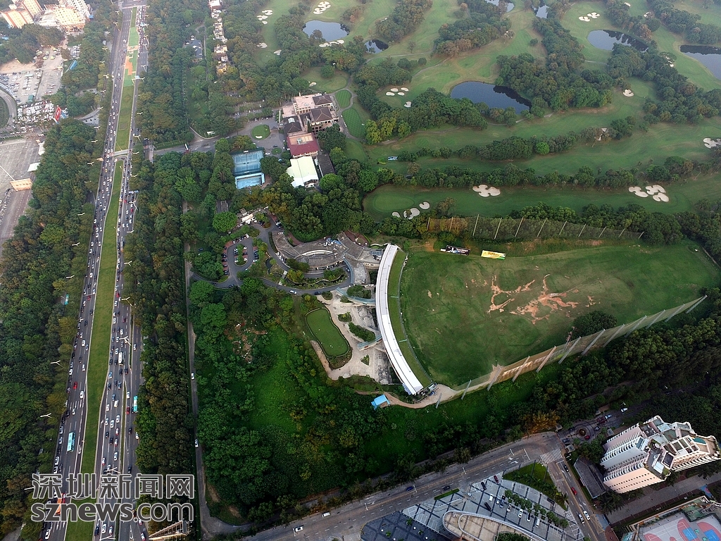 從高空俯瞰,深南大道就位于深圳高爾夫俱樂(lè)部球場(chǎng)旁邊