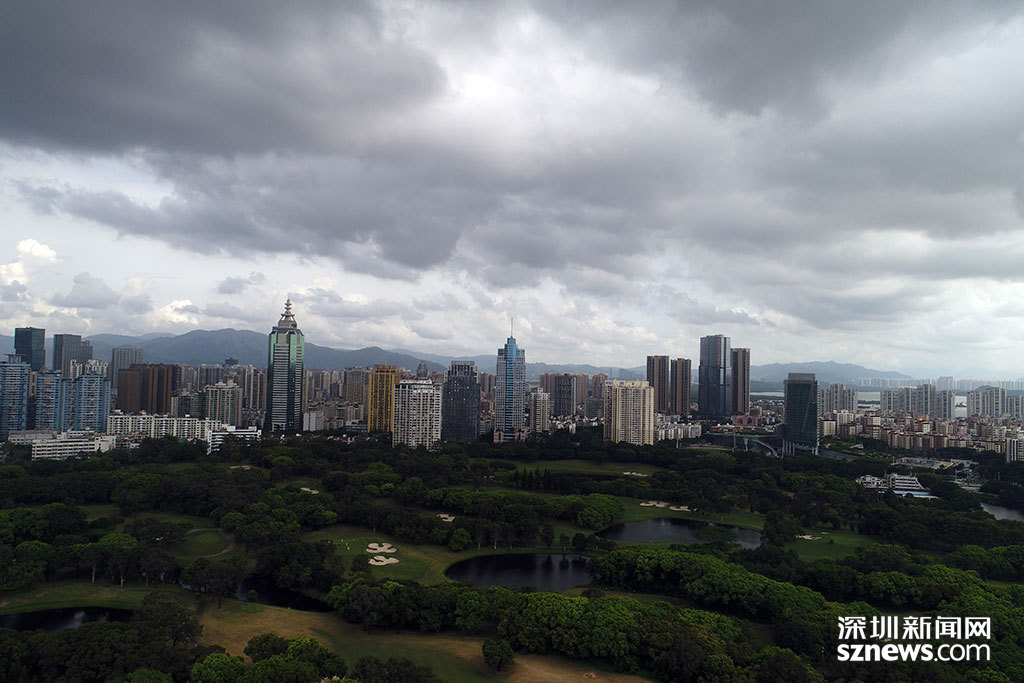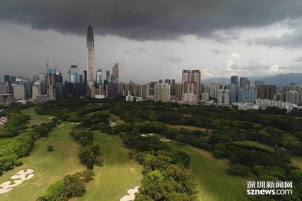 烏云籠罩下的平安大廈與深圳高爾夫俱樂(lè)部球場(chǎng)