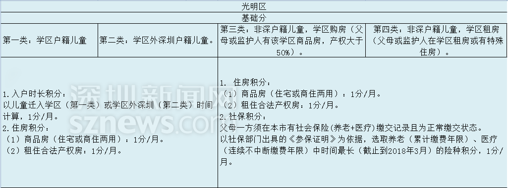 光明新區(qū)按學位類型順序錄取,第一類>第二類>第三類>第四類,相同學位類型,按積分由高到低順序錄取。