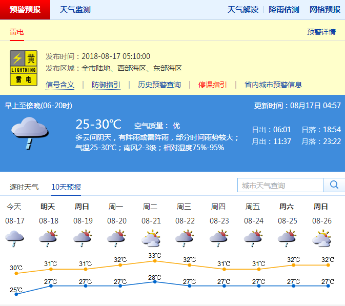 深圳新聞網(wǎng)訊(記者 施冰冰)深圳市氣象臺預(yù)計(jì),17日深圳多云間陰天,有陣雨,部分時(shí)間雨勢較大,氣溫26-30℃;18-19日多云,間中有陣雨或雷陣雨;20日起陽光增多,偶有短時(shí)陣雨,天氣趨于炎熱。