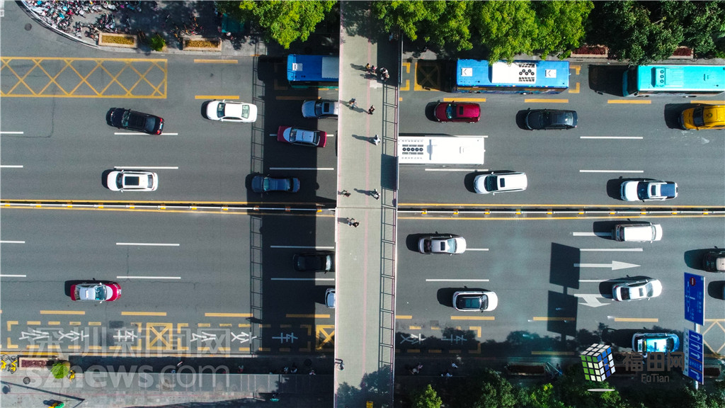 《飛閱福田》的第一站來(lái)到了備受矚目的華強(qiáng)北。華強(qiáng)北是中國(guó)電子第一街,也是深圳引以為豪的一張名片,這里每天車(chē)來(lái)人往,交通繁忙。位于華強(qiáng)北片區(qū)西部、深南中路上的中航天橋就是華強(qiáng)北一處重要的交通樞紐。2018年2月深圳市交通運(yùn)輸委員會(huì)福田交通運(yùn)輸局發(fā)布《中航天橋及周邊空中慢行系統(tǒng)工程(規(guī)劃及設(shè)計(jì))》招標(biāo)公告,公告中提出,深南路中航天橋設(shè)施簡(jiǎn)陋,存在無(wú)遮風(fēng)避雨頂棚,無(wú)電扶梯,結(jié)構(gòu)老化等情況,已不符合福田區(qū)打造國(guó)際城市的目標(biāo)及廣大市民對(duì)過(guò)街品質(zhì)的需求,須盡快對(duì)該天橋拆除重建,新建天橋上設(shè)置綠化、頂棚以及電扶梯,提升天橋景觀(guān)藝術(shù)及交通品質(zhì)。