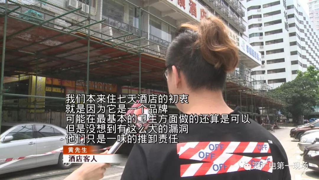 記者在酒店大堂的墻壁上,也看到了黃先生提供給記者的視頻中一模一樣的蟲子。洗衣機(jī)就隨意擺放在過道。黃先生還說,本以為7天酒店是一個(gè)連鎖大品牌,但這實(shí)際的環(huán)境和態(tài)度都讓他十分失望。