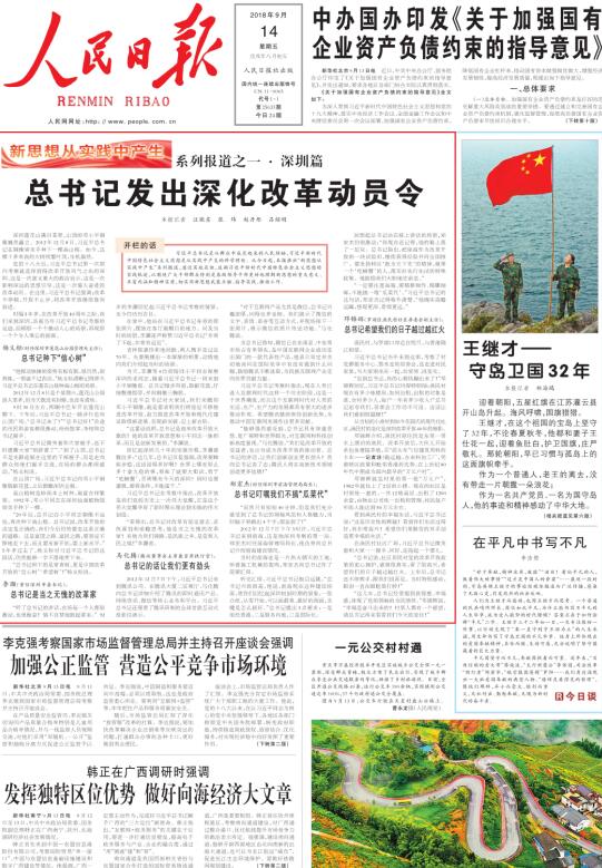 人民日?qǐng)?bào)今起推出“新思想從實(shí)踐中產(chǎn)生”系列報(bào)道,通過(guò)實(shí)地采訪,追溯習(xí)近平新時(shí)代中國(guó)特色社會(huì)主義思想的實(shí)踐軌跡。系列報(bào)道開(kāi)篇之作《總書(shū)記發(fā)出深化改革動(dòng)員令》今天在頭版頭條隆重推出,全文轉(zhuǎn)載如下: