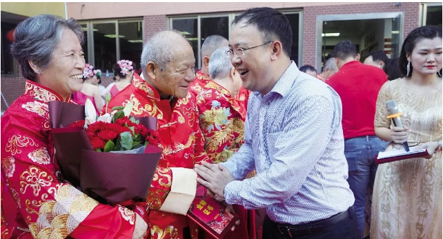 老人們雖然大多語言拘謹(jǐn),不少羞于表達(dá)愛意,但幾十年的風(fēng)雨同行,甘苦與共,相濡以沫,他們已用實(shí)際行動(dòng)踐行“執(zhí)子之手、與子偕老”的不變承諾。他們對(duì)婚姻的堅(jiān)守,彼此不離不棄,讓人為之動(dòng)容、深受感染,獲頒金婚證書。
