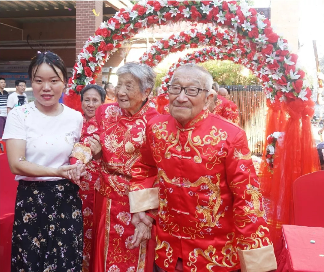 蛇口街道南水社區(qū)居民耿玉璽與王月鳳兩位老人已經(jīng)攜手走過69年,一直有個(gè)遺憾藏在心里——兩人年輕時(shí)沒有舉辦過婚禮,連一張結(jié)婚照片都沒有。日前,二老的遺憾得到彌補(bǔ),愿望得以實(shí)現(xiàn)。南水社區(qū)黨委以開展民生微實(shí)事為契機(jī),為包括耿玉璽與王月鳳夫婦在內(nèi)的社區(qū)15對(duì)老年夫婦舉辦了一場(chǎng)別開生面的夕陽美集體金婚慶典活動(dòng)。眾多嘉賓及老人的親朋好友、子女兒孫到場(chǎng)見證,獻(xiàn)上掌聲和祝福。