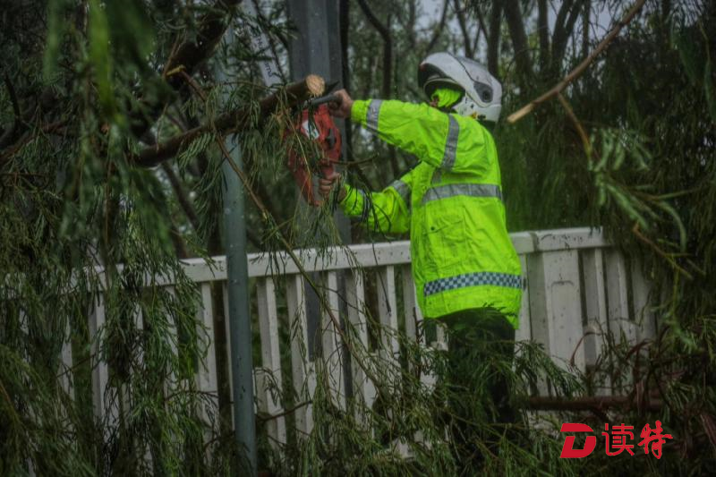 面對(duì)強(qiáng)大的臺(tái)風(fēng),艾力軍感到焦急又無(wú)奈。“真的是路兩旁的樹(shù)一棵棵的在我眼前倒下,疏通不完的排水口,清理不完的倒樹(shù)。”艾力軍對(duì)記者說(shuō)。即便如此,他還是帶領(lǐng)隊(duì)員不斷的在風(fēng)雨中努力嘗試不讓路被積水、倒樹(shù)堵死,一次次下車排除險(xiǎn)情。
