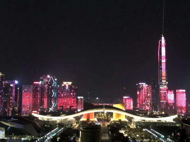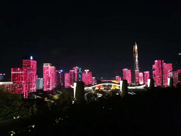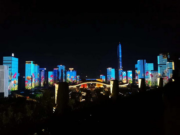 這臺(tái)別開(kāi)生面的晚會(huì),主舞臺(tái)設(shè)在市民中心廣場(chǎng),舞臺(tái)后方呈現(xiàn)著深圳市精心打造的福田中心區(qū)43座樓宇燈光秀,五彩斑斕、綺麗多姿的深圳城市新夜景,與晚會(huì)現(xiàn)場(chǎng)舞臺(tái)融為一體,為市民和廣大觀眾呈現(xiàn)出一個(gè)迷人的“深圳之夜”。