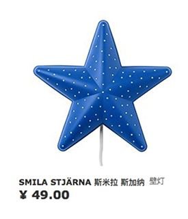 2013年12月,宜家決定召回這批自1999年以來(lái)一直在店內(nèi)銷售的壁掛式燈具。這批被召回的燈具包含八種設(shè)計(jì)類型:包括藍(lán)星、黃月亮,粉紅花、白花、紅心、綠蟲(chóng)、藍(lán)貝殼和橙色海馬。