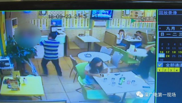 在9點(diǎn)50分左右,羅先生帶著女兒進(jìn)入餐廳后,這名黑色短袖男子仍然沒(méi)有停止抽煙,在雙方發(fā)生口角后,這名黑色短袖男子更是直接動(dòng)手,不但抄起身邊的物品砸向羅先生,還試圖沖上前毆打羅先生。
