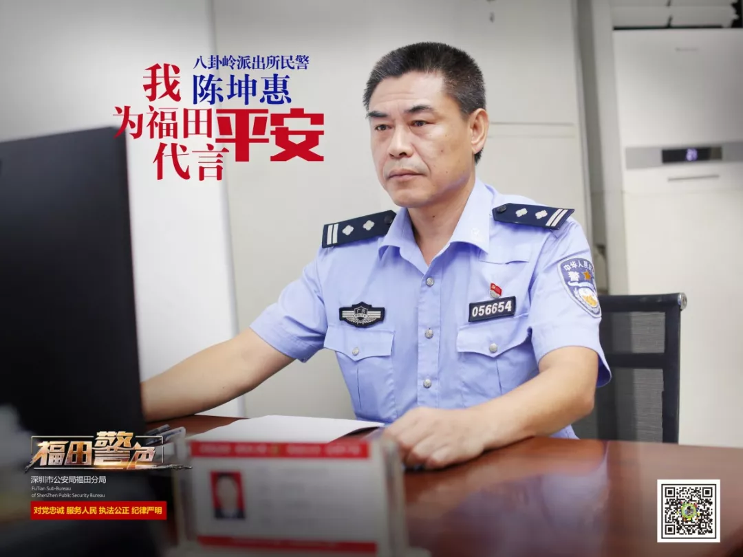 1995年,陳坤惠加入福田警隊,成為福田第一批巡警;2003年,調至八卦嶺派出所,開啟了扎根社區(qū)的警隊生涯。23年來,陳坤惠長年工作在基層一線,點點滴滴做好各項工作,甘當勤懇奉獻的“老黃牛”。