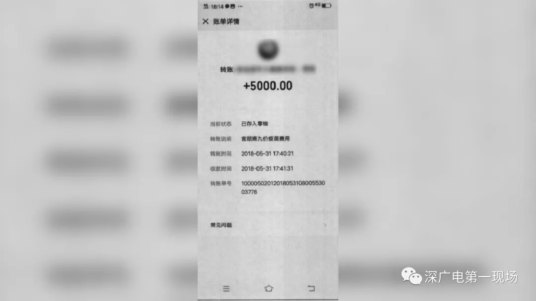 今年5月份,寶安的郭小姐接到前同事蔣某的推銷電話,自稱可以預(yù)約到香港注射HPV9價(jià)疫苗,而郭小姐剛好有這方面的需求,眼看辦公室的好多女生都轉(zhuǎn)錢(qián)找蔣某預(yù)約,自己不假思索也轉(zhuǎn)了五千。