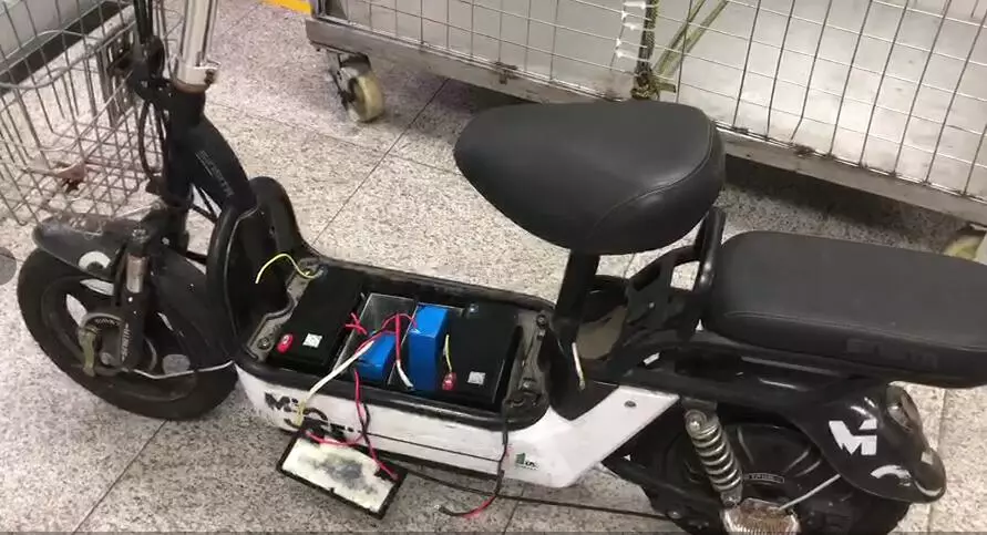 “當(dāng)時(shí)看到這名旅客電單車(chē)的腳踏板位置比車(chē)身其他位置要干凈一些、新一些,就進(jìn)行了檢查。檢查發(fā)現(xiàn)腳踏板可以直接掀起來(lái),里面的電池盒外表也比較新,這就不太正常了?!爆F(xiàn)場(chǎng)關(guān)員介紹道。隨后,關(guān)員對(duì)電動(dòng)單車(chē)電池盒進(jìn)行了拆卸。