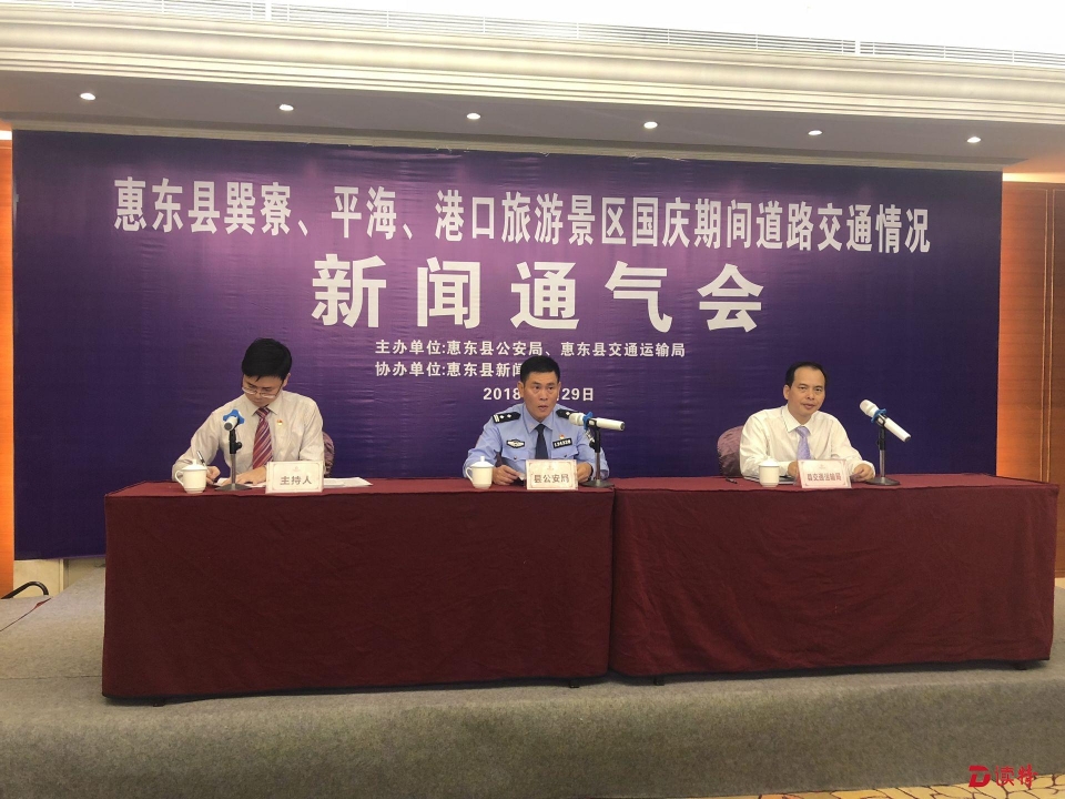 9月29日上午,惠東縣舉行巽寮、平海、港口旅游景區(qū)國慶期間道路交通情況新聞通氣會,通報通往巽寮、平海、港口等濱海旅游景區(qū)的道路X213線、X210線道路路況,以及國慶黃金周期間景區(qū)的道路交通狀況預判情況及出行提示、交通管制等情況。