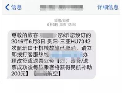 5分鐘之后,又收到一條稱(chēng)航班被取消的短信