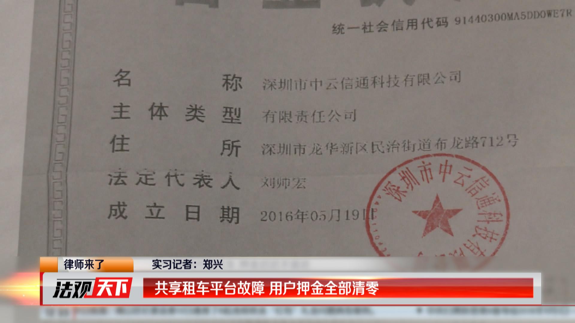 隨后,《法觀天下》嘉賓律師歐陽春陪同用戶一起來到了中迪用車所屬的公司,該公司名為深圳市中云信通科技有限公司,位于寶安區(qū)西鄉(xiāng)大道旁的滿京華現(xiàn)代西谷大廈3座11樓了解情況。進入公司后,中云信通科技有限公司代表李先生接待了我們,并且說明了APP使用不了和余額顯示為零的具體原因。