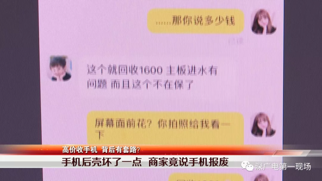 來自河南周口的黃先生說,他的遭遇就更離譜了。他的美圖t8手機(jī)至少還有八成新,店鋪原本出價(jià)1700元,但手機(jī)寄過去之后,對方竟然說手機(jī)的主板受潮,攝像頭也是壞的,只能給500元。