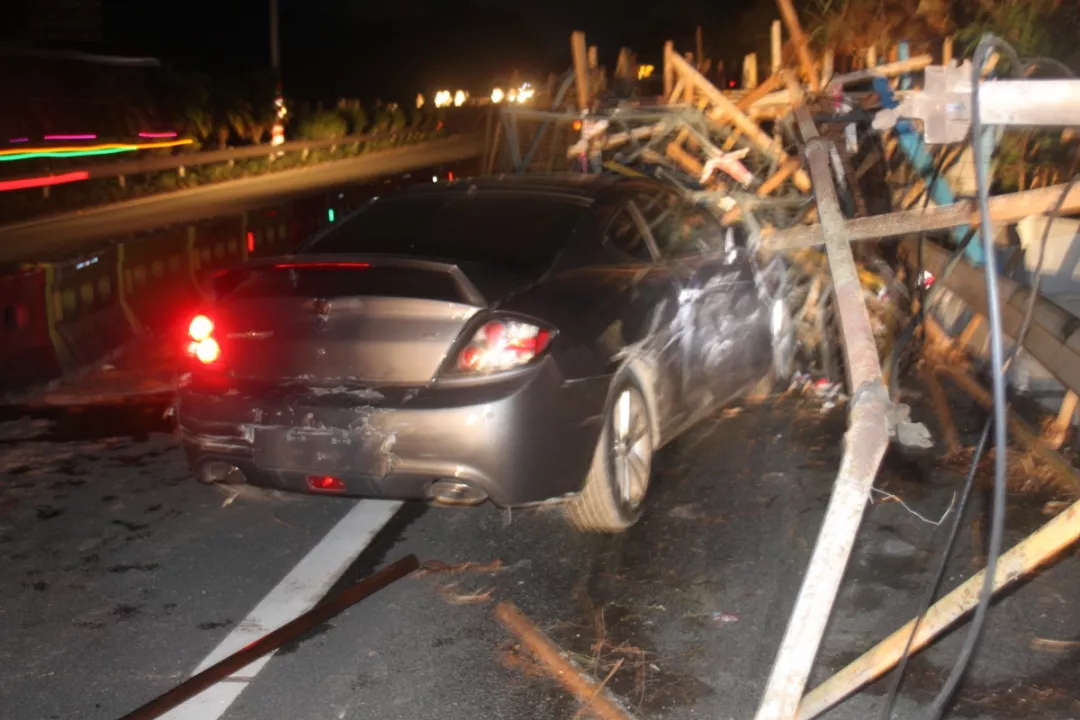 執(zhí)勤民警接報后立即前往龍崗區(qū)長深高速3655KM往鹽田方向路段(高速路)處理事故,現(xiàn)場發(fā)現(xiàn)肇事粵B牌小車駛進了高速公路右邊的施工區(qū)域撞上了鐵管,氣囊爆開,擋風玻璃被鐵管直接刺穿,車輛損毀嚴重。