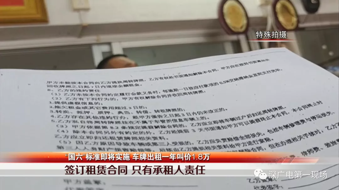 車(chē)牌、指標(biāo)的錯(cuò)位市場(chǎng),衍生了車(chē)牌出租的利益。二手車(chē)行在這過(guò)程中處于主導(dǎo)的地位,他們規(guī)定在車(chē)牌租用之前,承租人需要簽訂一份租賃合同,按理說(shuō)合同應(yīng)該劃分雙方的責(zé)任,然而記者發(fā)現(xiàn),合同明確指出了租牌者違約應(yīng)當(dāng)承擔(dān)的責(zé)任,條款多達(dá)10多項(xiàng)。