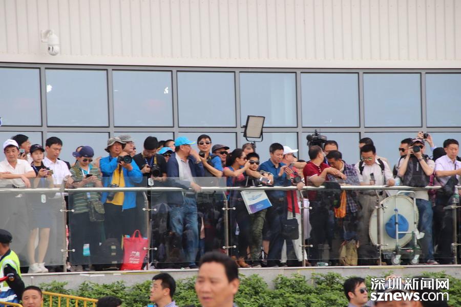 占據(jù)有利位置準備拍攝飛行表演的參觀者