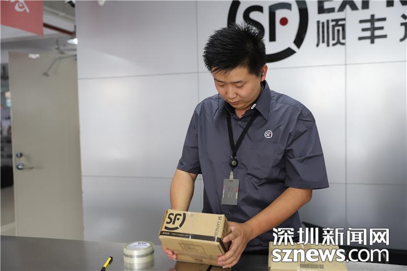 收派員對包裹進行打包