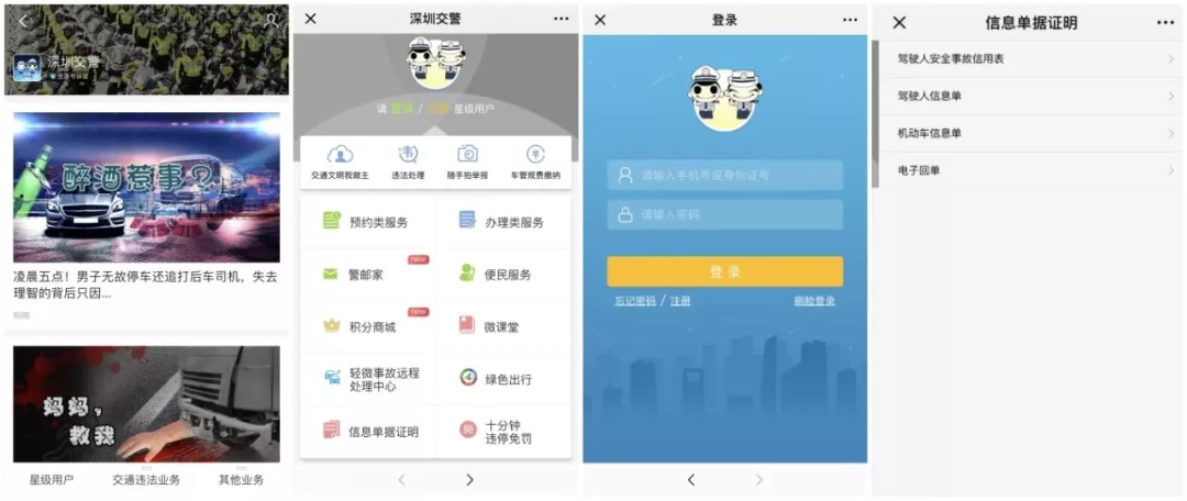 搜索生活號(hào)“深圳交警” →登錄星級(jí)用戶(hù) →選擇“信息單據(jù)證明” →選擇需要打印的證明類(lèi)型