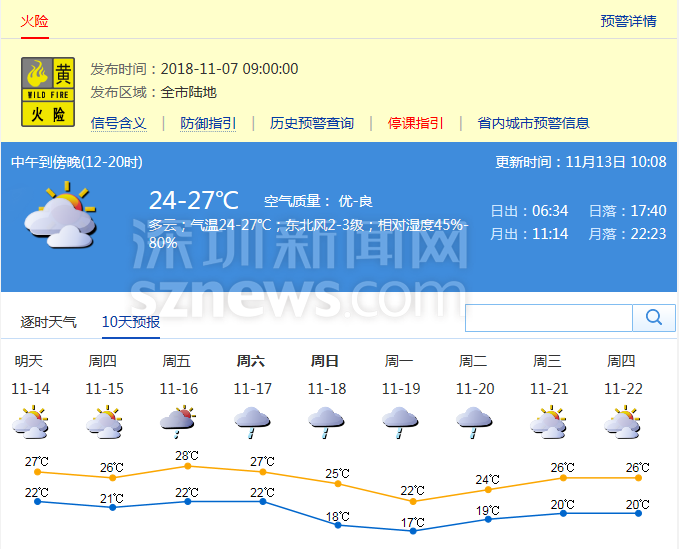 市氣象局發(fā)布未來十天天氣預報(數(shù)據(jù)更新于11月13日15時37分)
