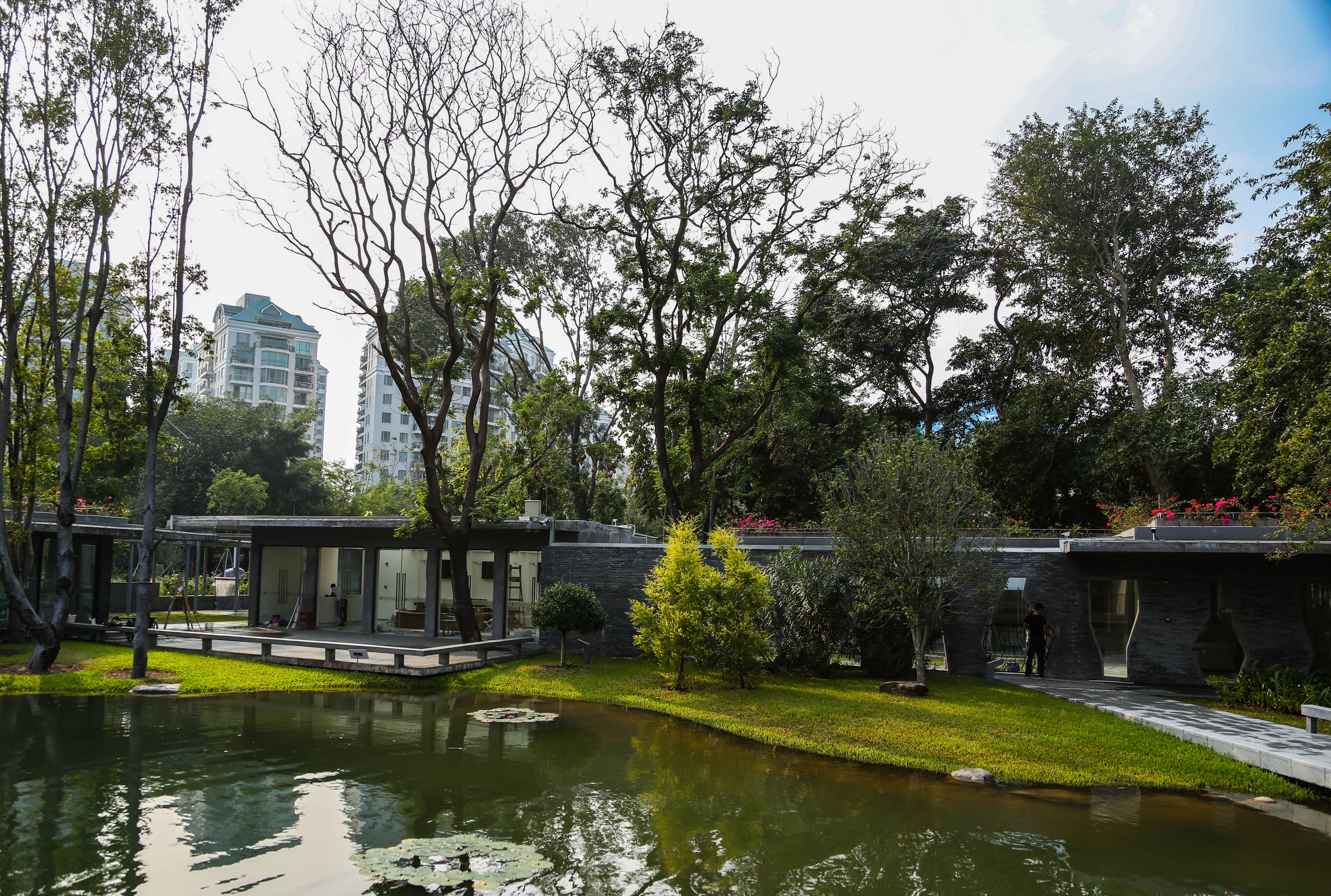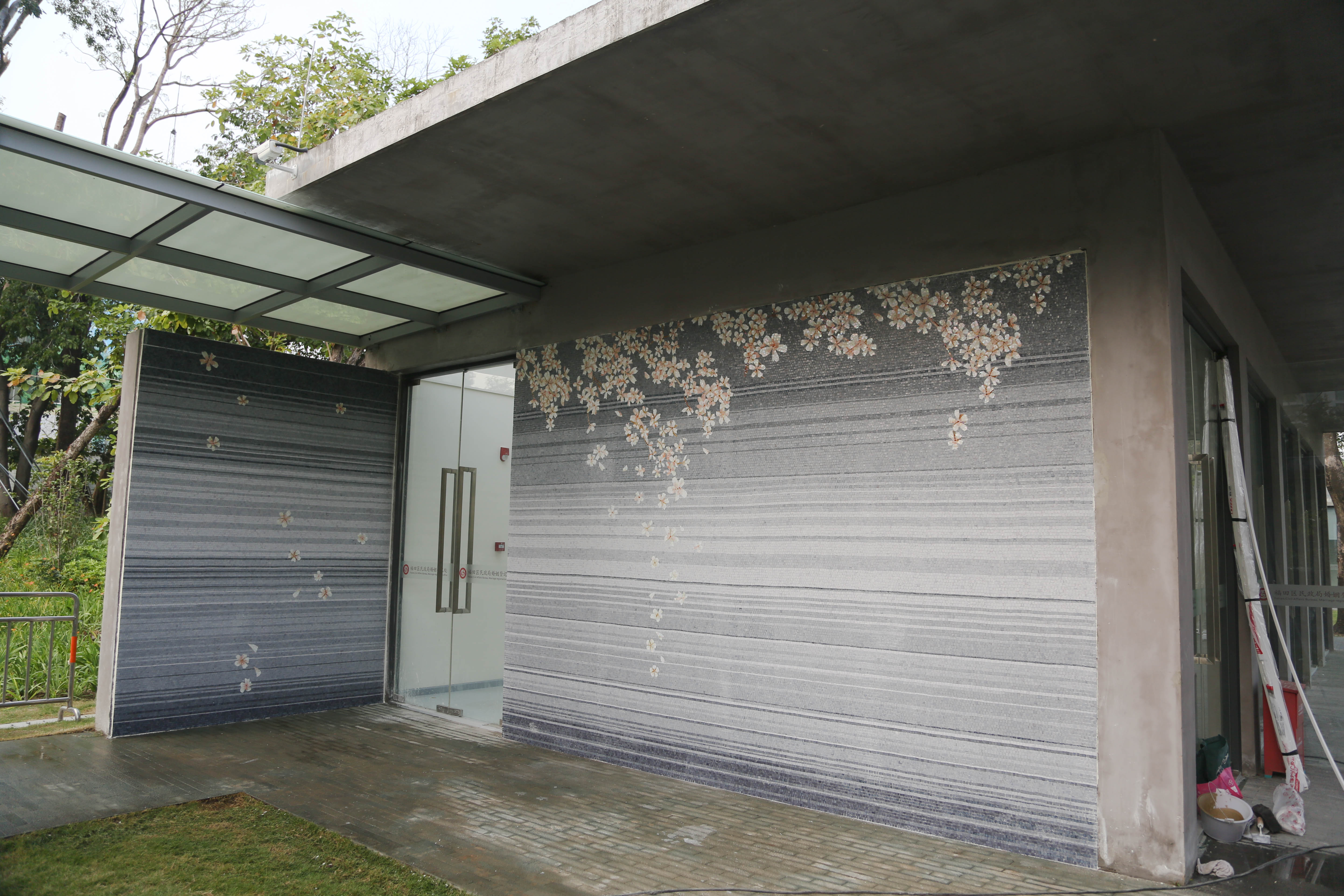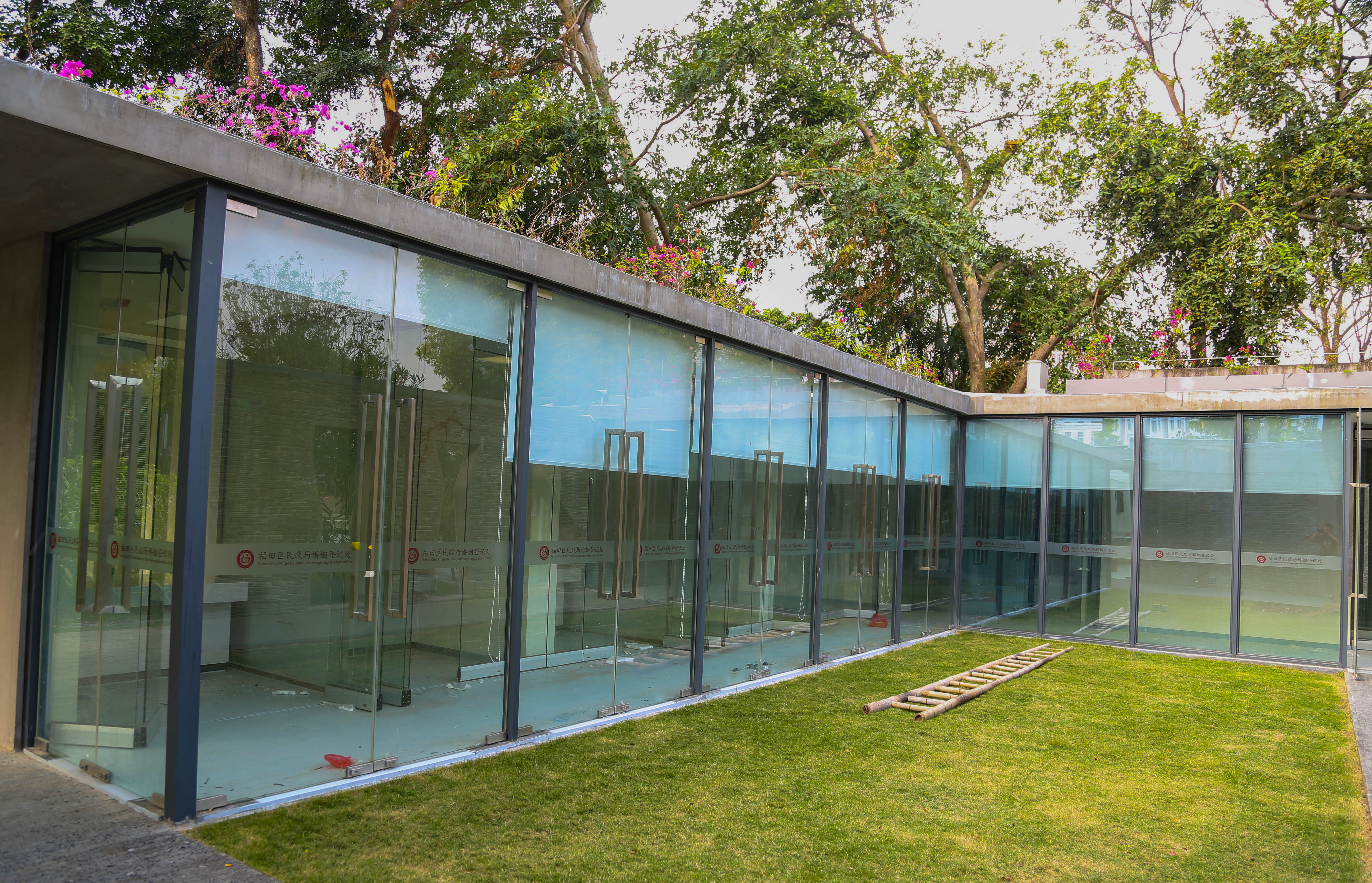 負責為婚姻登記處裝修的羅先生告訴記者,在中式禮堂西側的小池塘邊有一圈平房,在正式啟用之后這里將成為福田婚姻登記中心的行政辦公用房和接待市民進行結婚登記的辦事大廳。