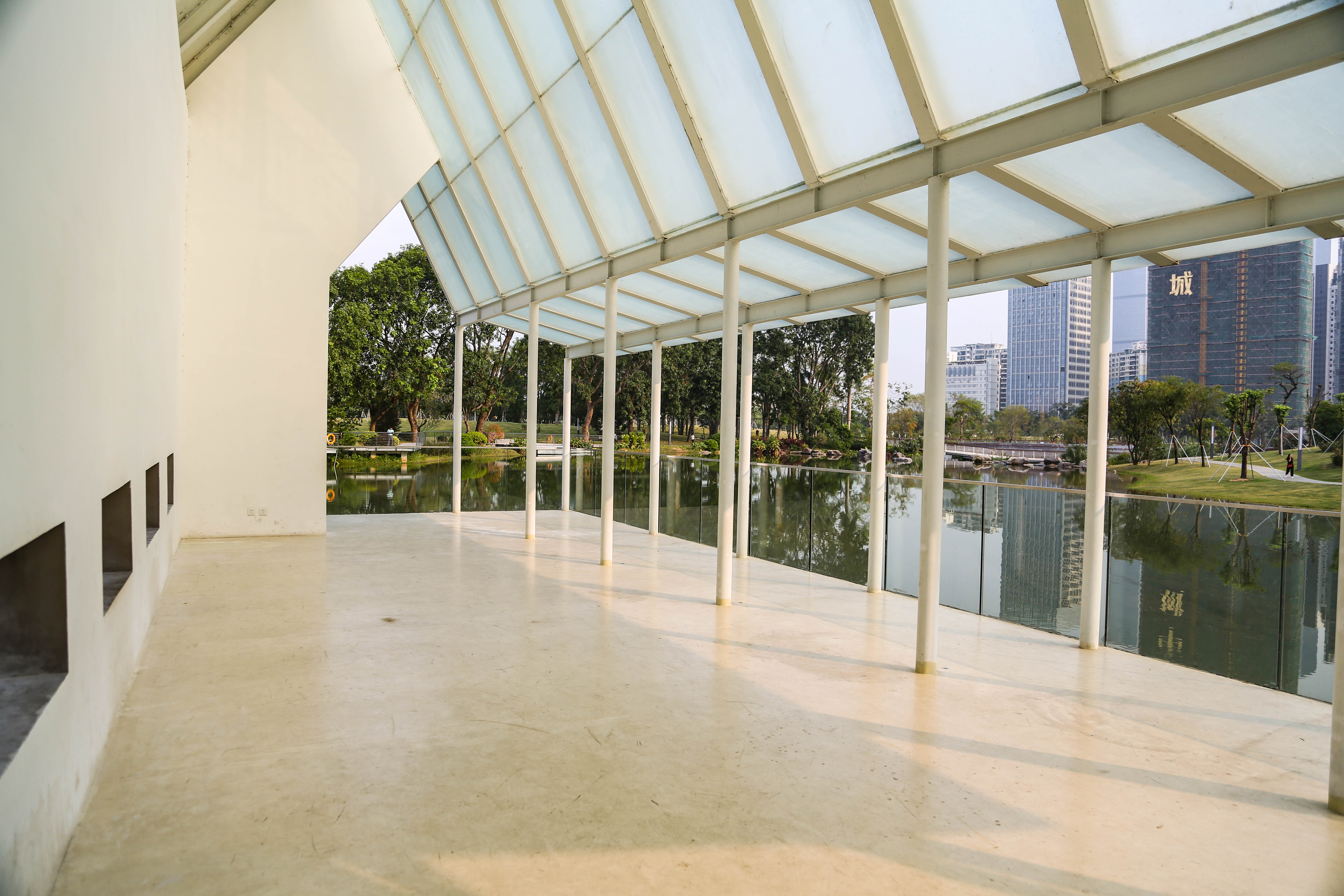 西式禮堂內(nèi)部,以白色為主色調(diào),正在重新粉刷。