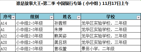 “誰是故事大王·第二季”中國銀行專場(chǎng)晉級(jí)復(fù)賽名單出爐