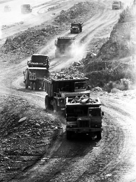1994年,修建濱海大道時(shí)泥頭車運(yùn)泥填海。鄭東升 攝