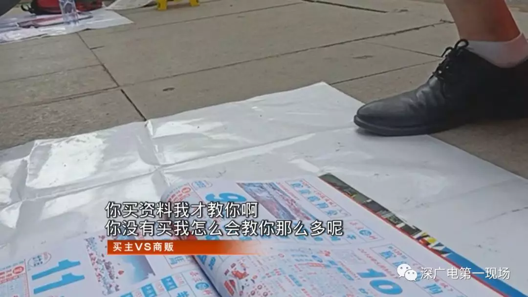 記者發(fā)現(xiàn),為了推銷自己的內(nèi)部資料,這些商販可謂是花樣百出,不少商販甚至打出“買了資料、中獎(jiǎng)到笑”的標(biāo)語(yǔ)來(lái)吸引顧客。在很短的時(shí)間里,就有不少人心甘情愿地掏了腰包。而前來(lái)購(gòu)買這種資料的,主要都是一些年紀(jì)比較大的老人或者是周邊工地上的工友,大家無(wú)一例外都想通過這種內(nèi)部資料來(lái)實(shí)現(xiàn)一夜暴富的夢(mèng)想。