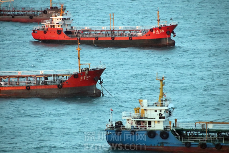 從相思嶺酒店房間陽(yáng)臺(tái)拍到的外伶仃海域上的船(攝于2018年11月22日清晨)