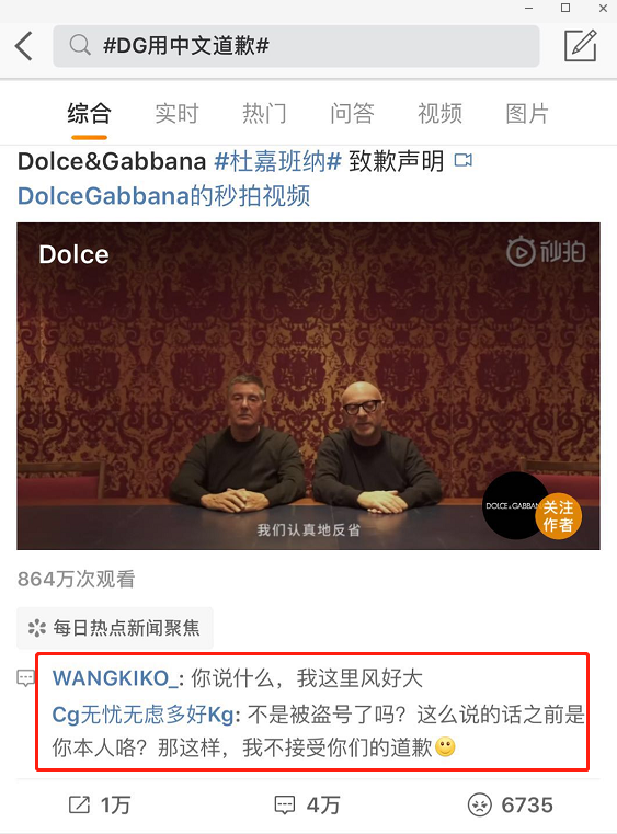 然后,D&G官方迅速出來(lái)回應(yīng)說(shuō):賬號(hào)被盜