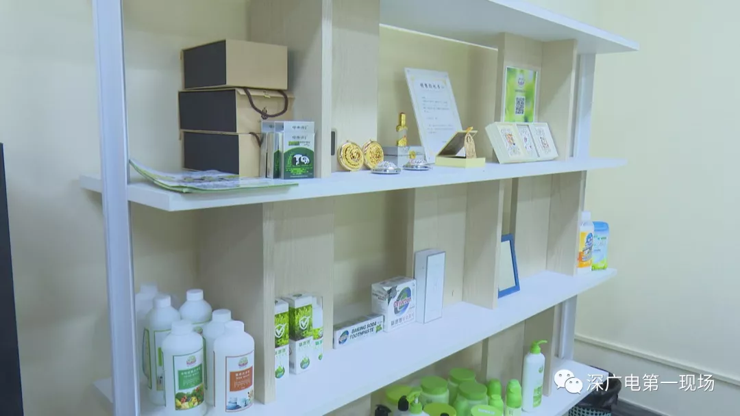 隨后執(zhí)法人員兵分多路,對這家福代代公司進行檢查,其中一路執(zhí)法人員來到會議室,發(fā)現有不少的產品擺放在展示架上,其中有記者暗訪時看到的各種所謂的“能量”產品,還有一部分產品全部是一些洗滌用品,各式各樣,五花八門。執(zhí)法人員在檢查中發(fā)現展示架上的一些傳單,存在問題。