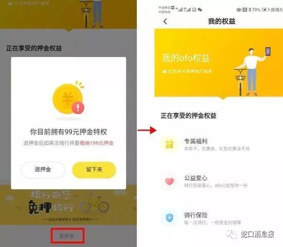 ▲ofo共享單車退押金頁面