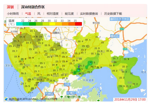 近期深圳天氣不穩(wěn)定,冷暖天氣交替切換頻道。預(yù)計(jì)未來(lái)一周天氣平穩(wěn),其中30日到12月2日多云,可見(jiàn)陽(yáng)光,早晚清涼,部分時(shí)間有輕霧,30日氣溫18 ℃ ~25 ℃;另外,12月3日 ~12月6日濕度上升,間中有零星小雨,氣溫小幅波動(dòng)。