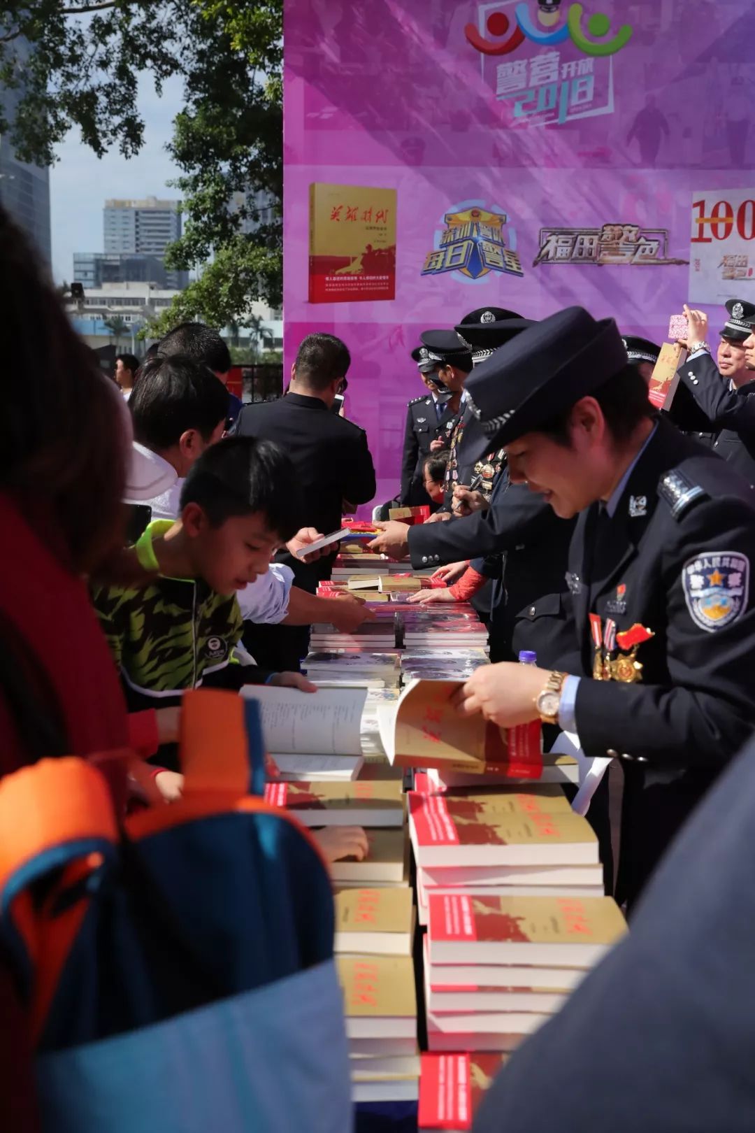 當天上午,人民公安出版社副總編李國強、著名作家李迪與市公安局領導來到福田分局開放點現(xiàn)場為深圳公安“每日警星”代表簽名贈書。在贈書點,許多市民排起了長隊,領取《英雄時代——深圳警察故事》。