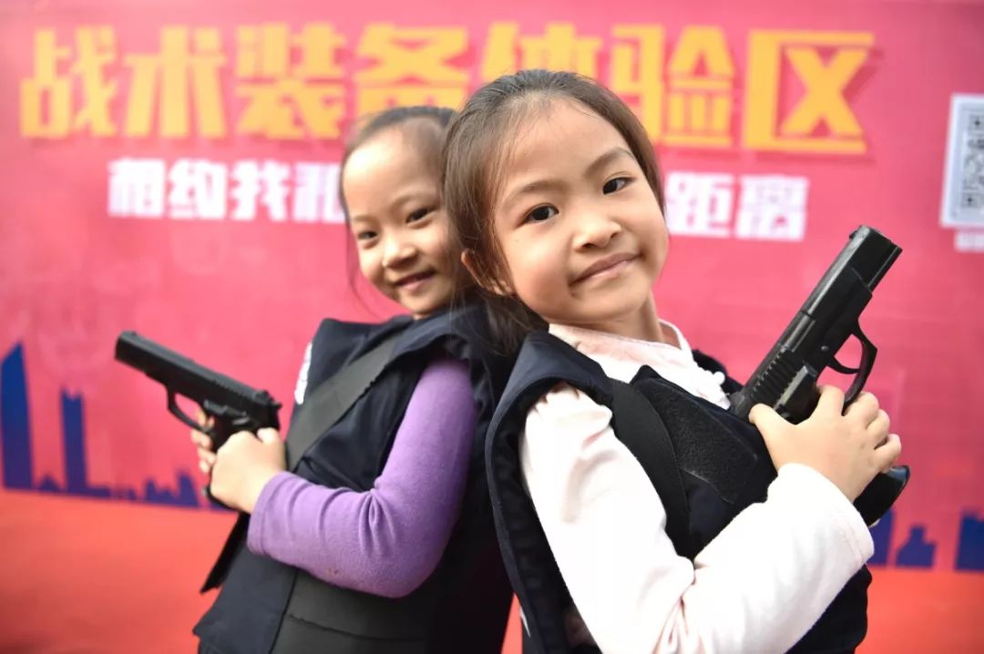 防暴盾牌、槍支警械威武霸氣,隊列棍術、擒拿格斗輪番上陣。很多人興致勃勃地穿戴警用裝備,頭戴鋼盔、身穿警服,登上反恐敞篷車拍照留念,圓夢警察夢想。