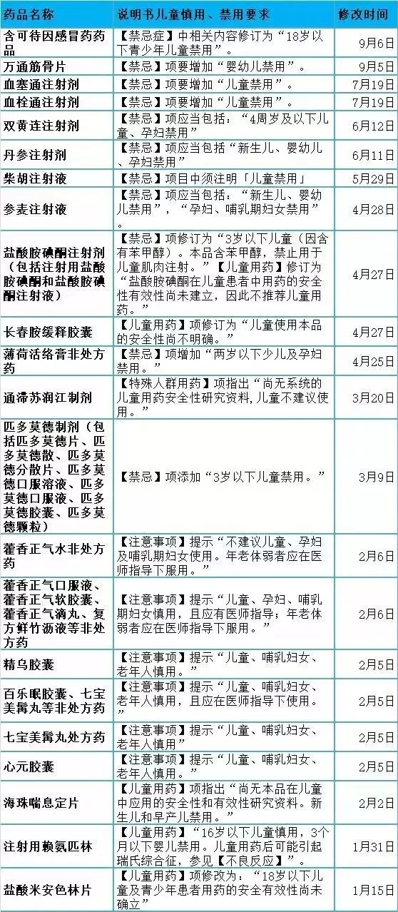 1月31日,原國(guó)家食藥監(jiān)總局發(fā)布《關(guān)于修訂注射用賴氨匹林說(shuō)明書(shū)的公告(2018年第11號(hào))》?!緝和盟帯宽?xiàng)修改為:16歲以下兒童慎用,3個(gè)月以下嬰兒禁用。