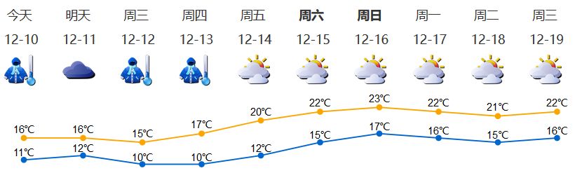 我市今天今天陰天間多云,有零星小雨;氣溫11-16℃,北部及山地再低1℃左右;北風3級,陣風6級;相對濕度75%-95%。