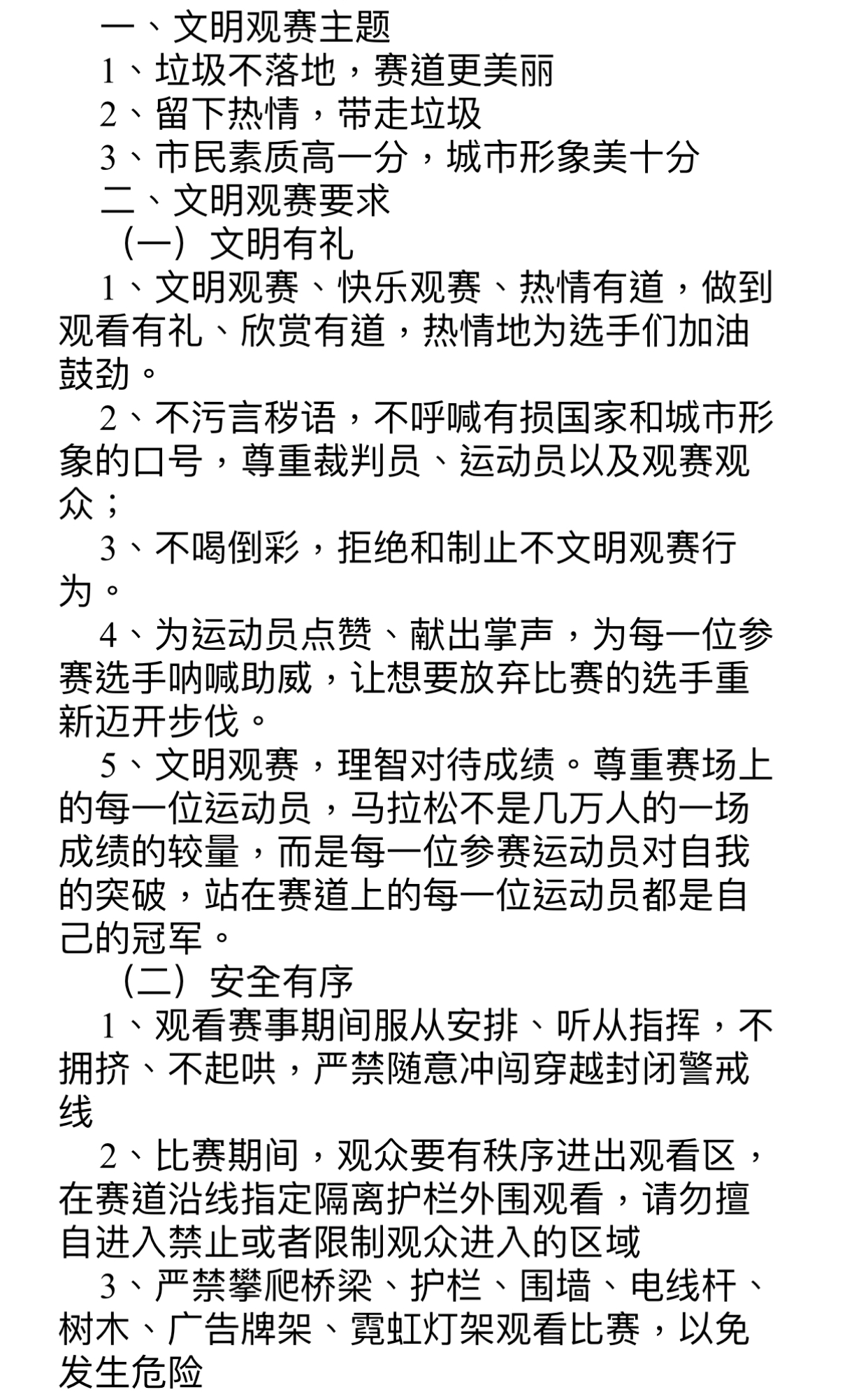 深圳新聞網(wǎng)12月14日訊(記者 陳婕)2018深圳國際馬拉松本周日(12月16日)正式開跑。一場馬拉松賽事,是展示城市文明形象的重要窗口,也能讓來自世界各地的參與者領(lǐng)略深圳的文明風(fēng)貌。結(jié)合2018深圳國際馬拉松的實際情況,深圳國際馬拉松組委會特制定了《2018深圳國際馬拉松文明觀賽實施標(biāo)準(zhǔn)》。